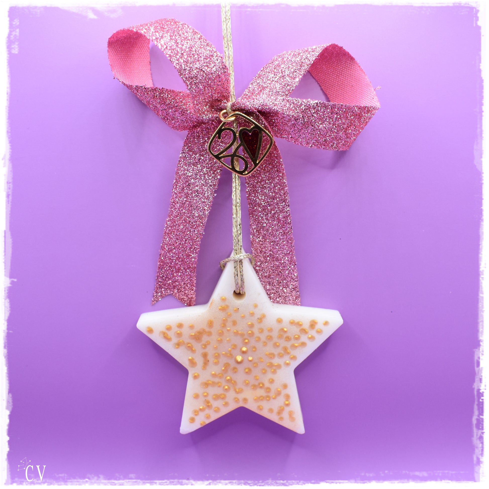 Let your holiday tree shimmer with wonder using our Star-Shaped Wax Ornament, sprinkled with golden dots and crowned with a 2026 Good Luck Charm.
